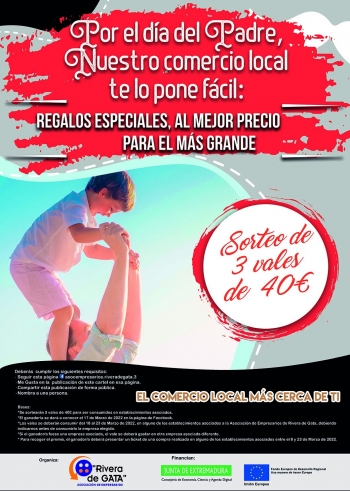 Para recoger el premio , se debe presentar un ticket de una compra realizada en algún establecimiento asociado a la Asociación de Empresarios Rivera de Gata entre el 8-23 de Marzo de 2022. El consumo de los vales se debe realizar del 18 al 23 de marzo de 2022