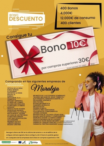 · BONOS-DESCUENTO DEL TEJIDO EMPRESARIAL DE MORALEJA DEL 16 DE MAYO AL 30 DE JUNIO DE 2022 CONSIGUE TU BONO DE 10€ POR COMPRAS SUPERIORES A 30€ EN LAS EMPRESAS DE MORALEJA ADSCRITAS A LA CAMPAÑA