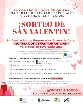 #SorteoSanValentín #comerciolocal #sanvalentín #Moraleja #sierradegata #cenasrománticas #elcomerciolocaltequiere Femaerca Tejido Empresarial Ayuntamiento de Moraleja Asoc Empresarios Rivera de Gata Ver menos
