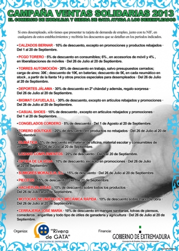 Todos los desemppleados podrán presentar su tarjeta de demanda de empleo, junto a su nif, en cualqueira de los establecimientos comerciales adheridos a la campaña e identificados con el cartel que adjuntamos y se podrán beneficiar de importantes descuentos.
