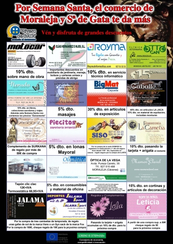 ESTA SEMANA SANTA , EL COMERCIO DE MORALEJA Y SIERRA DE GATA TE DA MÁS: VEN Y DISFRUTA DE GRANDES DESCUENTOS ,HASTA EL DÍA 4 DE ABRIL.