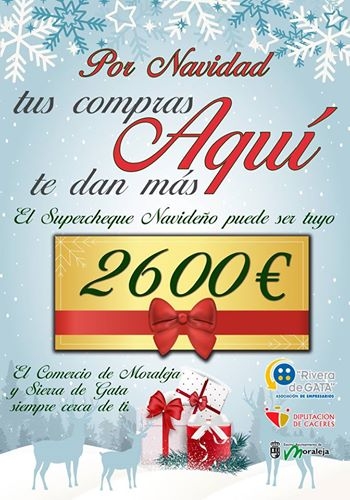 Realiza tus compras en alguno de los 52 establecimientos comerciales que han participado en la campaña y podrás optar a ganar un supercheque valorado en 2600€, consistente en 52 cheques por importe de 50€, para ser consumidos en los diferentes comercios participantes.El ganador será el portador de la papeleta cuyas últimas cuatro cifras coincidan con la del primer premio del sorteo del NIÑO.