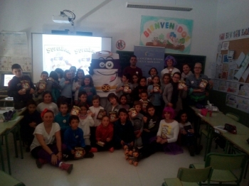 Ayer, Superbolsa y sus ayudantes , acompañados por el Vicepresidente de la Asociación de Empresarios Rivera de Gata,de Moraleja y Comarca de Sierra de Gata, Roberto Serrano Campa, visitaron el CEIP Ntra Sra de la ASunción , de la localidad de Valverde Del Fresno, donde de una manera divertida y amena, explicaron a los niños de 3º y 4º, sobre la importancia de estar unidos y luchar juntos por el Comercio local.