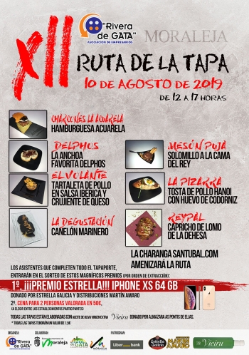 🍷🍷🥘🍺🍤XII RUTA DE LA TAPA DE MORALEJA. DÍA 10 DE AGOSTO, DE 12 A 17 HORAS. VEN Y DISFRUTA DE LAS MEJORES TAPAS Y SI CONSIGUES CUMPLIMENTAR EL TAPAPORTE CON EL SELLO DE CADA ESTABLECIMIENTO PARTICIPANTE , PODRÁS GANAR UN IPHONE XS 64 GB, VALORADO EN MÁS DE 1100€ , DONADO POR ESTRELLA GALICIA- DISTRIBUCIONES AMARO O UNA CENA PARA DOS PERSONAS A ELEGIR ENTRE LOS ESTABLECIMIENTOS PARTICIPANTES.