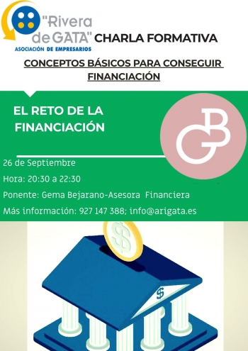 • La charla formativa “Conceptos básicos para conseguir financiación” de GBASESORAFINANCIERA.com favorece El conocimiento de los términos financieros, así como la búsqueda de la mejor financiación para los particulares y empresas. Se ofrece un programa completo, lo que siempre quisiste saber para conseguir una financiación inteligente como la de las grandes empresas.