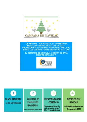 “ UN AÑO MÁS , POR NAVIDAD , EL COMERCIO DE MORALEJA Y SIERRA DE GATA TE DA MÁS”- PRÓXIMAMENTE LAS IREMOS PUBLICANDO PARA QUE TODOS LOS CLIENTES PODÁIS DISFRUTAR DE ELLAS