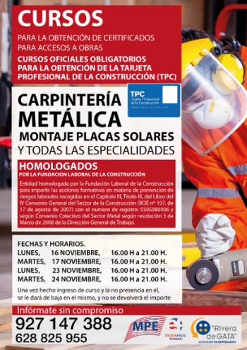 ⬇️⬇️⬇️📣📣 PRÓXIMO CURSO DE CARPINTERÍA METÁLICA ESPECIALIDAD MONTAJE DE PLACAS SOLARES -20 HORAS. FECHA DEFINITIVA DE REALIZACIÓN: 16,17,23 Y 24 DE NOVIEMBRE , DE 16 A 21 HORAS, CADA DÍA. SE ADMITIRÁN TRES INSCRIPCIONES.