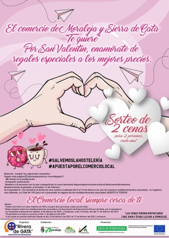 Desde la Asociación de Empresarios Rivera de Gata estamos llevando a cabo una Campaña de San Valentín , fomentando las compras en el comercio local bajo el lema "El comercio de Moraleja y Sierra de Gata te quiere; enamórate de regalos especiales a los mejores precios. Para ello, se han difundido carteles con este lema y se han sorteado dos cenas para ser consumidas en establecimientos asociados a la Asociación entre aquellas personas que han compartido el cartel a través de la página del facebook de la ASOCIACIÓN , mencionando el nombre de la persona con la que compartiría la cena e indicando #apuestaporelconsumolocal#salvemoslahosteleria, todo ello con el fin de dinamizar el sector en momentos tan delicados. Las cenas se pueden disfrutar en la modalidad take away . Además, si las ganadoras traen un ticket de una compra realizada en un establecimiento asociado del 6 al 12 de febrero se les entregará un cheque adicional de 15€ para consumir en establecimientos asociados. EL jueves se ha celebrado el sorteo y han resultado ganadoras ELENA GARRIDO RIVERO Y NAZARET SÁNCHEZ DOMÍNGUEZ , ambas de Moraleja. Enviaste Hoy a las 00:09 Las cenas las podrán disfrutar del 12 al 17 de febrero