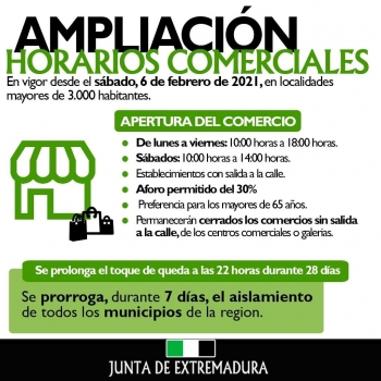 Medidas de flexibilización en los municipios > 3.000 habitantes y con una incidencia inferior a 500 casos:Se levanta el cierre perimetral.#Comercio al 30% de aforo.#Hostelería al 40% en local y 50% en terrazas.Museos al 40%.Teatros, #Cines y auditorios al 30%. Prohibidas las competiciones deportivas, salvo las federadas de ámbito nacional que tendrán un aforo permitido del 40% al aire libe415Personas alcanzadas12InteraccionesPromoción no disponible11