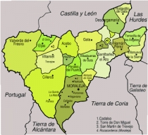 Con sus 20 pueblos constituye uno de los macizos montañosos más occidentales del Sistema Central. Busca, hacia poniente, la humedad fecundante del Atlántico que llega por el “aire de Portugal“ y retiene sus cinco valles abiertos al Suroeste por otros tantos ríos: el Erjas, el Árrago, y las Riberas de Trevejo, de Acebo y de Gata.