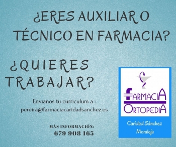 NOS LLEGA ESTA OFERTA DE TRABAJO DE NUESTRA EMPRESA ASOCIADA FARMACIA CARIDAD SÁNCHEZ MATEOS PARA AUXILIAR O TÉCNICO EN FARMACIA