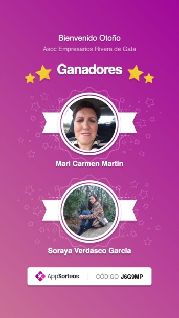 🍀🍀🍀👏👏👏Las personas ganadoras del sorteo de la #campañabienvenidootoño , de los dos vales de 30€ cada uno para ser consumidos en establecimientos asociados a la Asociación de Empresarios Rivera de Gata han sido: