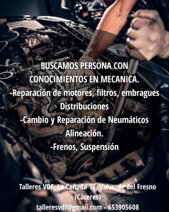 OFERTA DE EMPLEO PARA NUESTRO ASOCIADO TALLER MECÁNICO VDF EN VALVERDE DEL FRESNO (CÁCERES) #empleo #empresas #asociaciónempresariosriveradegata