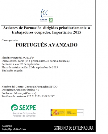 Federación Empresarial Cacereña ofrece en Moraleja, en el Centro de Formación EFICO, Curso de Portugués Avanzado.