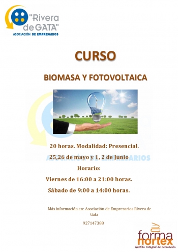 PRÓXIMO CURSO DE ENERGÍAS RENOVABLES-BIOMASA Y FOTOVOLTAICA. INSCRIPCIONES HASTA EL 10 DE MAYO, EN ASOCIACIÓN DE EMPRESARIOS RIVERA DE GATA ( 927.14.73.88)