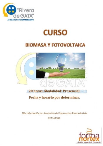 Curso de energías renovables, especialidad en biomasa y fotovoltaica. Fecha por determinar, hasta cubrir plazas, dentro del convenio de colaboración que la Asociación de Empresarios Rivera de Gata tiene suscrito con FORMANORTEX. Más información:info@arigata.es // Tfno: 927147388
