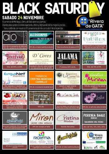 SÁBADO, 24 DE NOVIEMBRE , BLACK SATURDAY, EN MORALEJA Y SIERRA DE GATA.GRANDES DESCUENTOS TE ESPERAN. EN ESTE ENLACE ENCONTRARÁS PARTICIPANTES Y DESCUENTOS QUE APLICARÁN.EL COMERCIO LOCAL MÁS CERCA DE TI.VEN Y DISFRUTA COMPRANDO!!