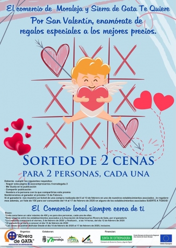 La Asociación de Empresarios Rivera de Gata, de Moraleja y Comarca de Sierra de Gata SORTEA DOS CENAS ROMÁNTICAS para dos personas, cada una de ellas.