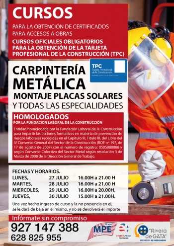 ⬇️⬇️⬇️Nueva fecha para el curso de TPC Carpintería metálica, especialidad montaje de placas solares.