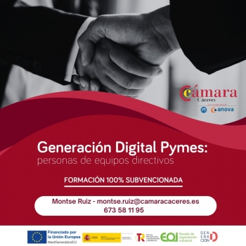 La Cámara de Comercio de Cáceres te invita a participar en un curso GRATUITO de Generación Digital para Directivos de PYMES y Autónomos.